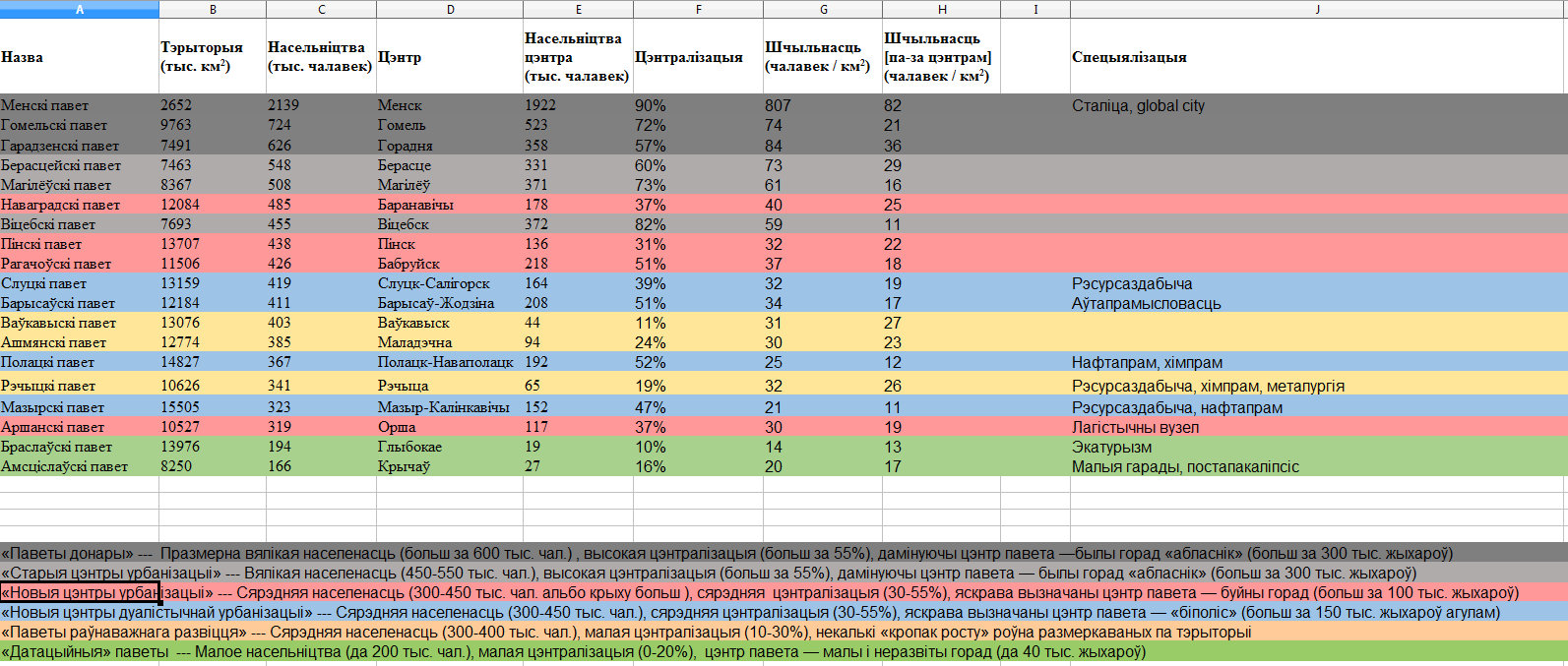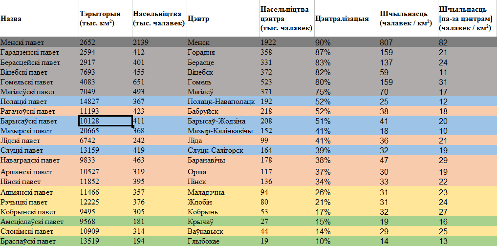 Комментарий к файлу: Табліца па паветах