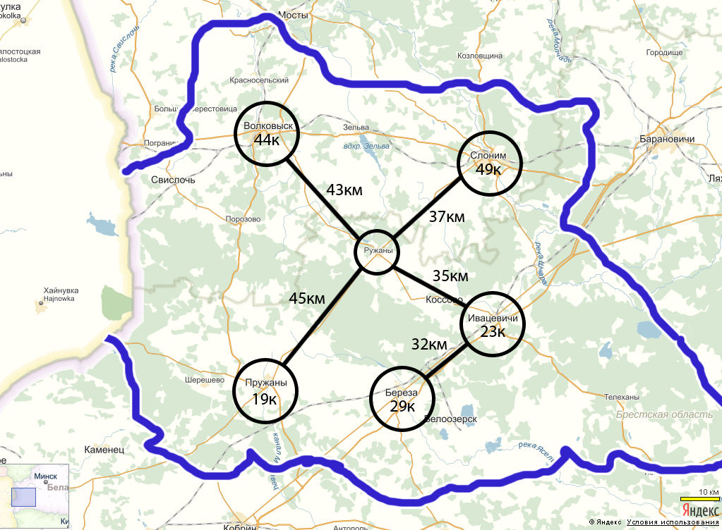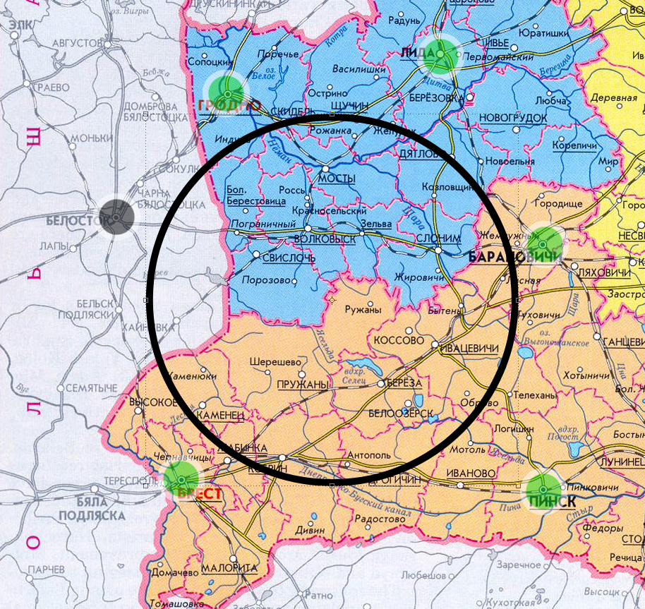 3. Ситуация с Берестовицами (для Большой, кстати, не 40, а 58 км до центра Гродно, против 90 до Слонима и 35 до Волковыска) не сильно отличается от ситуации для Мостов или Свислочи.