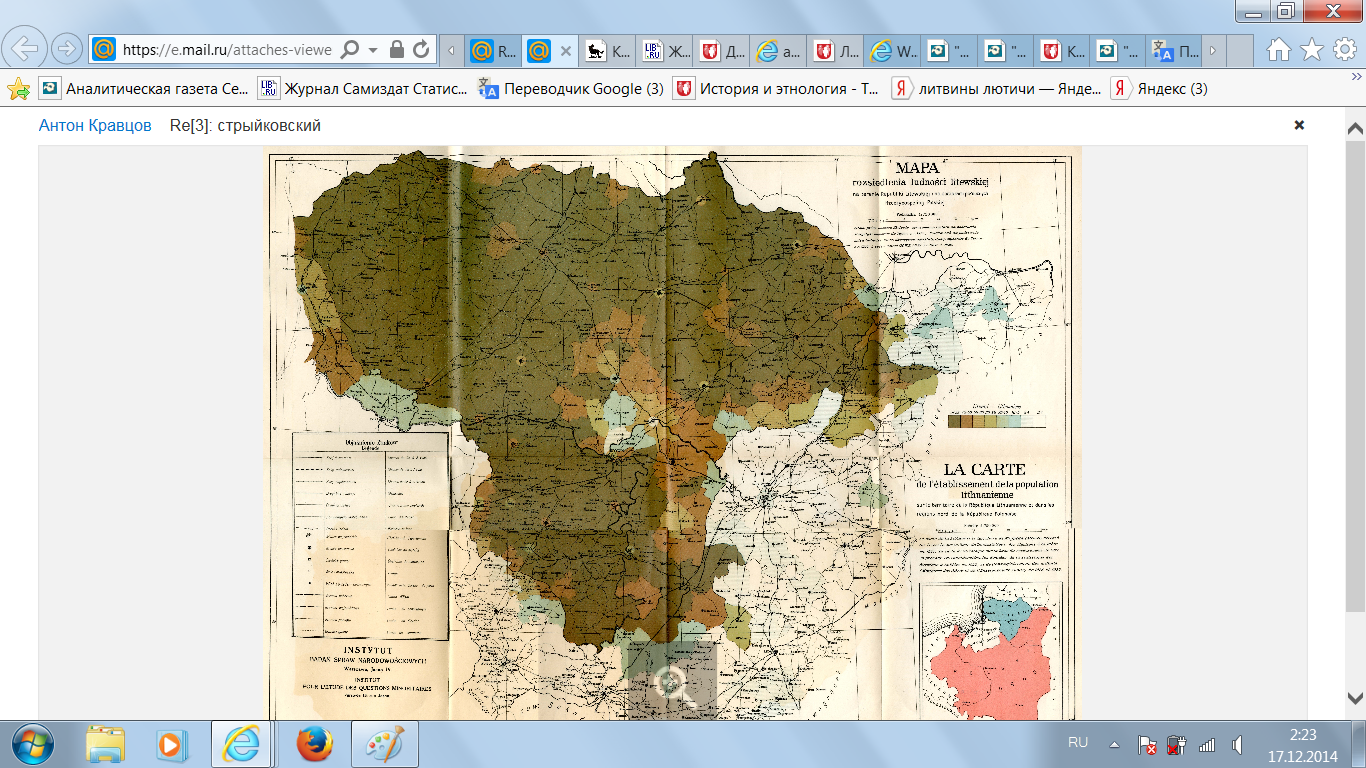 Фрагмент немецкой карты этнической на рубеже 20 века: