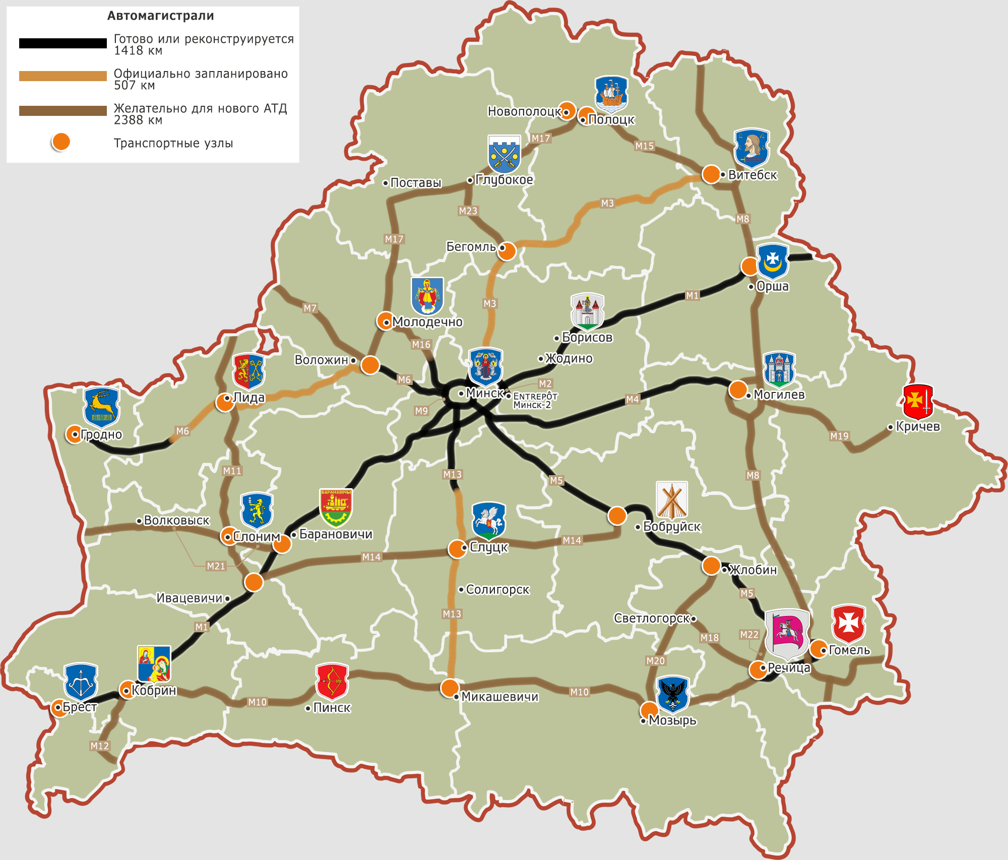 5) Сеть должна учитывать программу "Дороги Беларуси" и "Программу развития логистической системы Республики Беларусь на период до 2015 года".