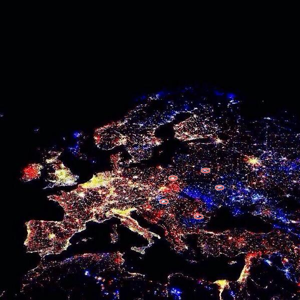 Карта Европы ночью