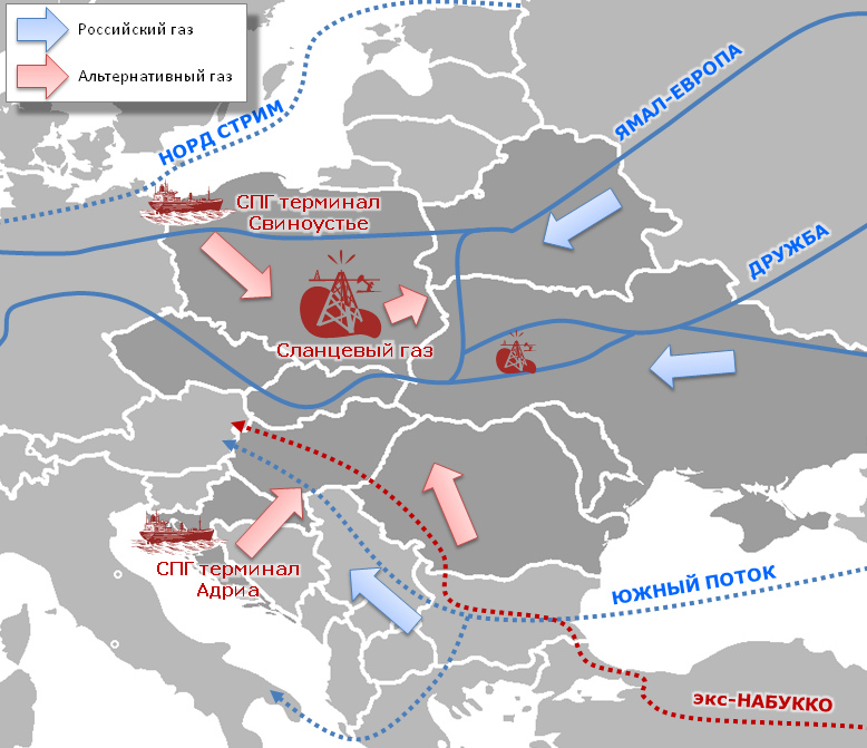 2) Энергетическая кооперацияВосемь вышеназванных стран должны сесть за один стол и установить общую энергетическую стратегию в регионе, а также механизмы и институты ее воплощения. В первую очередь, речь идет о диверсификации источников поставок энергоносителей, а также о создании универсальной всеохватывающей сети по их распределению. Парадоксально, но элементарное отсутствие путей доставки (нефте- и газопроводов, линий электропередач, и т.д.) внутри Интермариума является ключевым фактором, сдерживающим конкурентную среду на рынке, а вовсе не зависимость от России. Старая инфраструктура была спланирована исключительно для тривиальных потоков с востока на запад. Возможность для их движения с севера на юг, а также в реверсном режиме изменит ситуацию самым кардинальным образом. Элементы такого планирования и инвестиций уже прорабатываются в Вышеградской группе и они должны быть расширены на весь Интермариум.