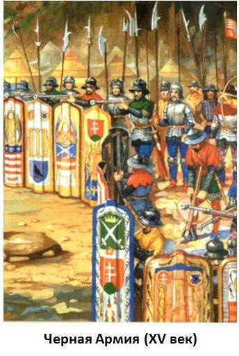 Янош ХуньядиПри Яноше орден уходит в тень из публичной сферы. Зато вслед за победой над турками под Белаградом в 1456 году, за которую Янош получил прозвище «Спасителя Белаграда», Хуньяди создает новый инструмент для аккумуляции рыцарских ресурсов Интермариума — так называемую Черную Армию. По своей сути это был ранний иностранный легион. Его костяк составляли чехи, поляки, литвины, русины, сербы, трансильванские немцы и молдаване. Черная Армия практически не знала поражений, что было совершенно не удивительно. Она была не только профессиональной, но и исключительно хорошо вооруженной по последнему слову военной техники. Каждый пятый солдат имел аркебуз, что было необычно высоким уровнем для Европы во времена дороговизны пороха. Одним из наиболее ярких сражений Черной Армии была битва на Хлебовом Поле в 1479 году, где она разбила превосходящие турецкие силы.
