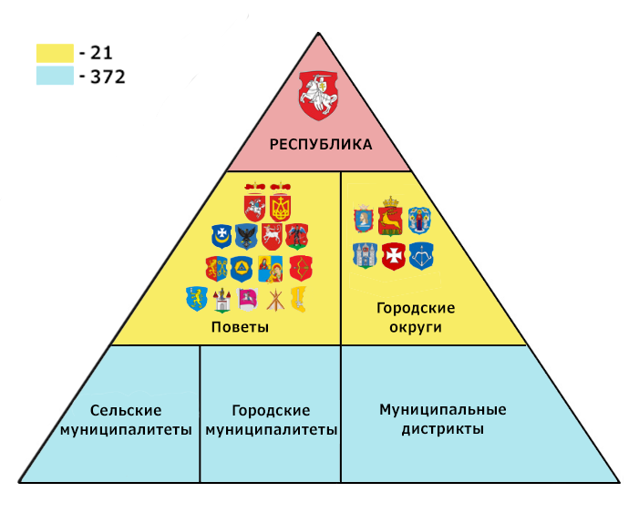 Если это так, то из 356 вычитаем 6 областных городов и добавляем 22 дистрикта (24 минус 2 бобруйских). Итого 372 муниципалитета.