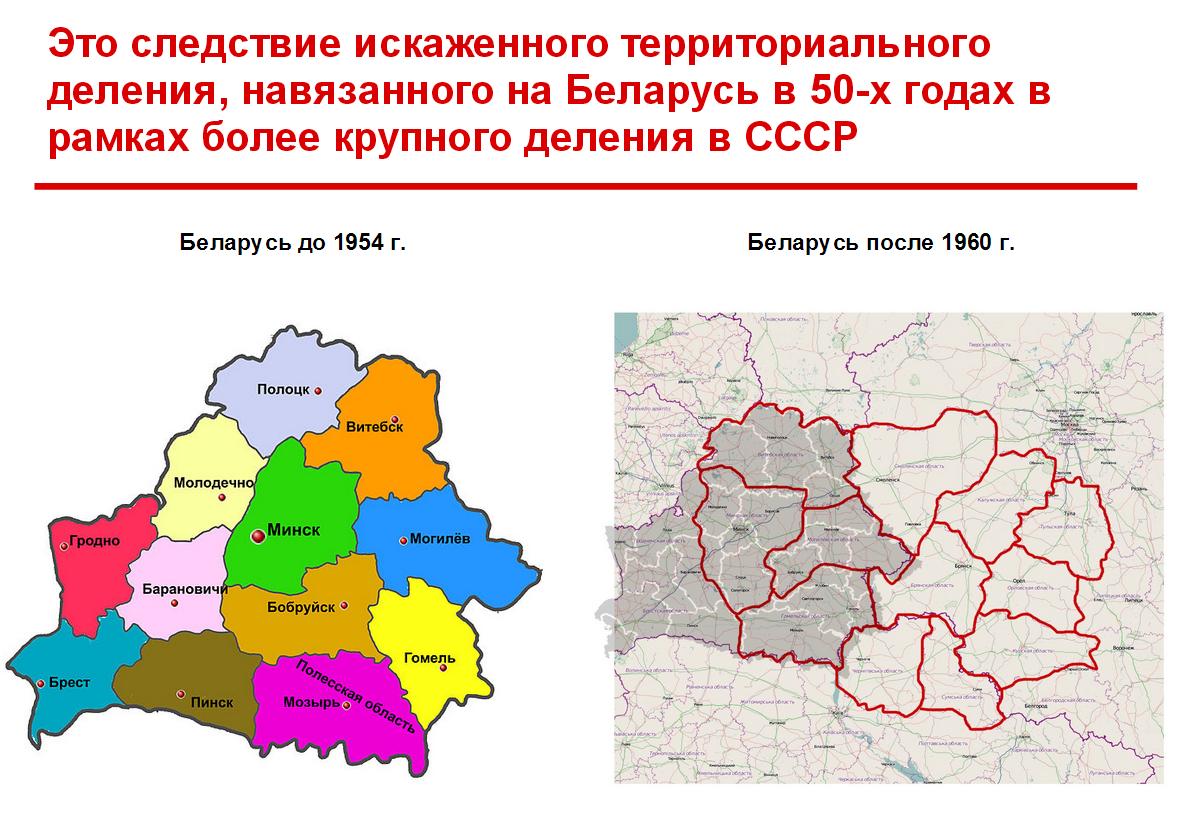 Вот на этом слайде Беларусь после 1960-го года надо наложить не на наше деление АТД, а на то деление, что было до 1954 года (слева). Вероятно, чтобы сделать это толково карту фо 1954 придется перерисовать самим.