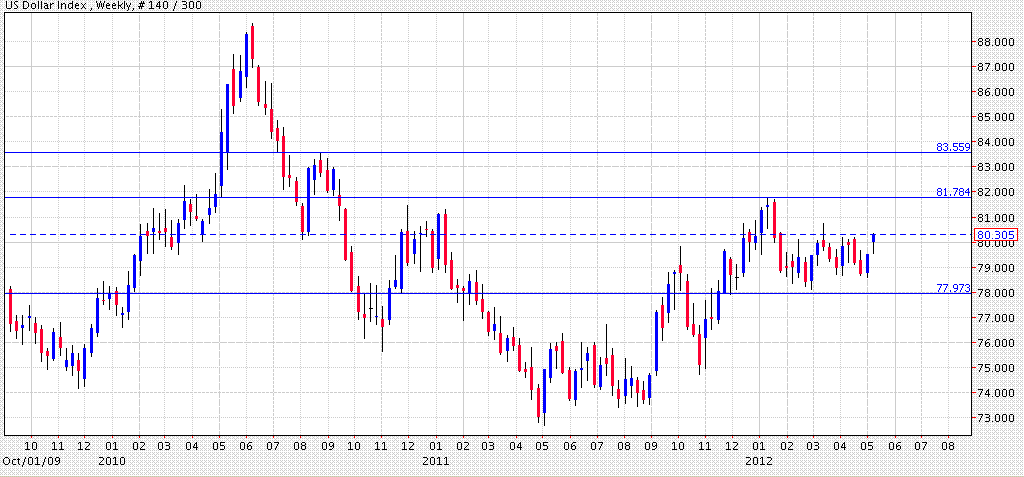 Как видно из графика, за последние 5 месяцев ничего принципиально не изменилось. У взвешенного доллара по-прежнему ближайшая цель - 82 с мощным там сопротивлением. Именно поэтому пока об окончательном развороте и росте доллара говорить рано. Соответстенно и рано говорить о начале падения нефти. С позиций сегодняшнего дня вероятней всего коррекция с горизонтом до начала октября нынешнего года, уже отчётливо видимая на золоте: